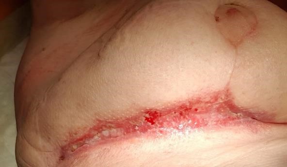 - Wundheilungsstörung mit oberflächlichen, endständigen Fistelgängen nach Rekonstruktionsplastik seit 15.07.2020