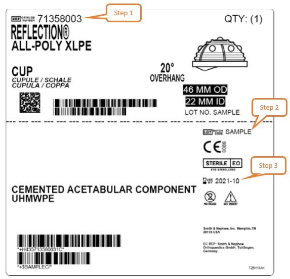 Step 1: Identify the Catalogue (Ref) Number next to a REF symbol - this is generally located in the top left-hand corner of the label. In the above example, the catalog number is 71358003.
